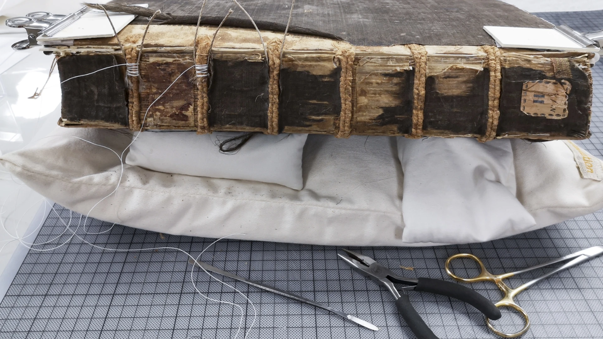 Complémentaire de la conservation préventive, la conservation curative constitue un ensemble d’actions directes entreprises sur l’objet dont la fragilité extrême et la vitesse de détérioration menacent son existence. Sans intervention, la perte imminente de l’objet est en jeu. La quête ultime de la conservation curative consiste ainsi à ralentir les processus actifs de dégradation afin de permettre aux livres de traverser les âges et les générations.