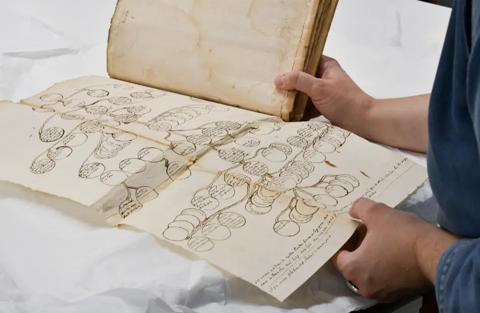 Tout commence par un examen approfondi du livre au travers de son identification, de sa description, de l’étude de ses valeurs culturelles ainsi que de son histoire matérielle. Puis le constat d’état dresse un premier bilan sanitaire et documente méthodiquement toutes les altérations visibles.