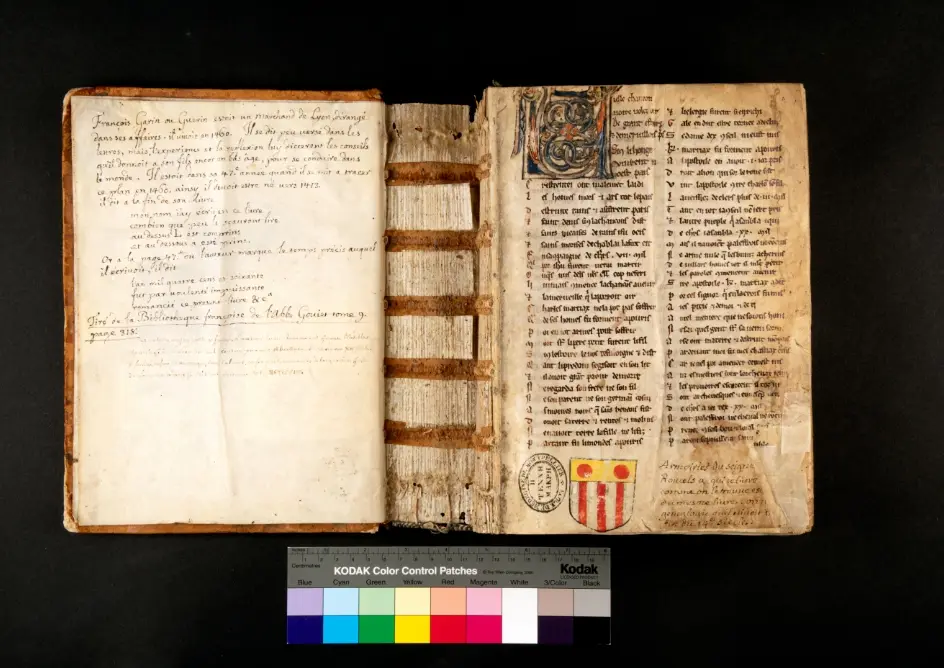 La prise de vue d’ouvrages patrimoniaux nécessite une grande rigueur ainsi qu’une manipulation attentionnée : la fidélité de l’image par rapport à l’objet photographié est primordiale. L’utilisation d’une charte colorimétrique graduée en centimètres permet d’évaluer la taille de l’objet et d’assurer un rendu optimal des couleurs en post-production.
